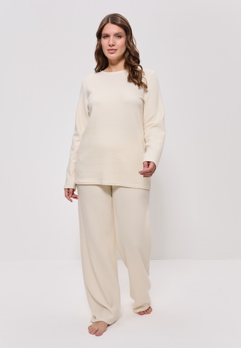 Стильный костюм с брюками домашний трикотажный в рубчик молочный 1189 Cleo имеется в размерах: 46. 48. 50. 52. 54. 56. 58.
