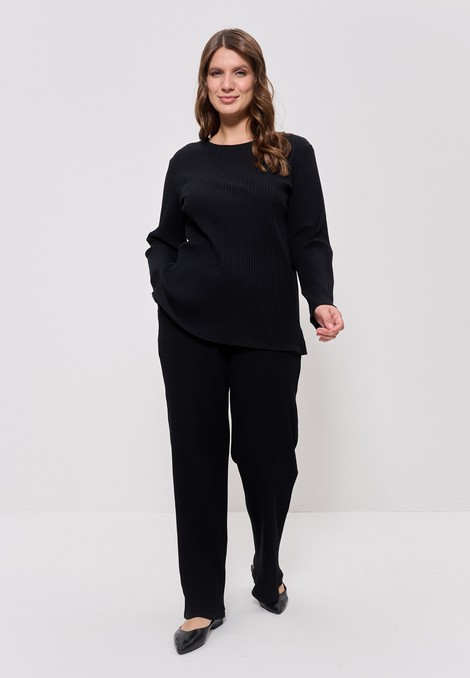 Костюм домашний брючный трикотаж в рубчик чёрный большие размеры 1185 Cleo имеется в размерах: 46. 48. 50. 52. 54. 56. 58.