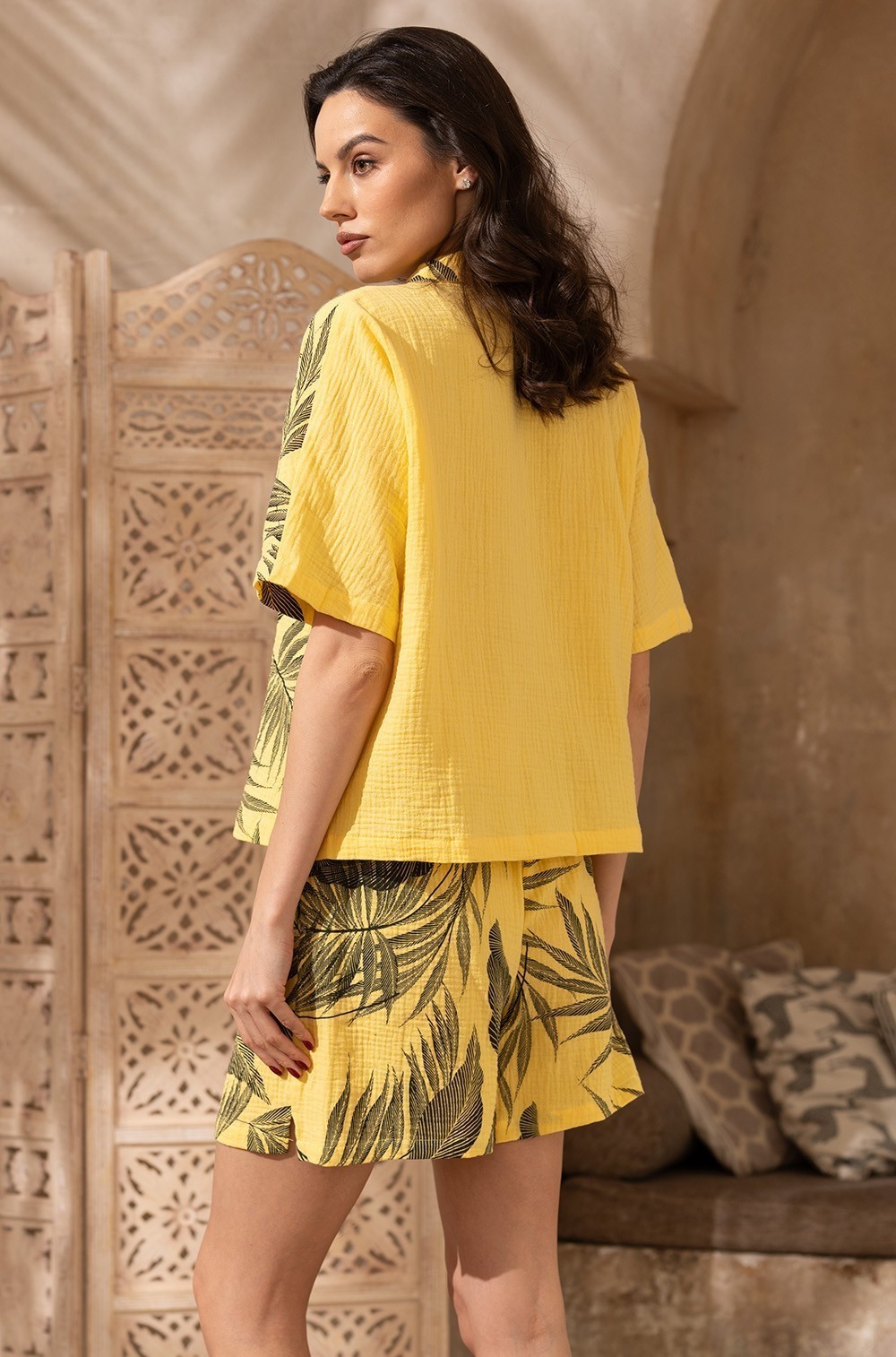 Летний костюм для дома и отдыха TENERIFE 5223 Mia-Amore — это идеальный выбор для тех, кто ценит комфорт и стиль. Костюм состоит из жакета свободного силуэта с коротким рукавом и шорт. Жакет выполнен из комбинации принтованного и однотонного муслина, что придаёт ему особый шарм. Шорты полностью изготовлены из принтованного материала. По бокам шорт есть удобные карманы. Костюм изготовлен из 100%-го хлопка, поэтому он приятен к телу и обеспечивает свободу движений. Такой комплект подойдёт для дома и отдыха, он станет отличным выбором для жаркой погоды.