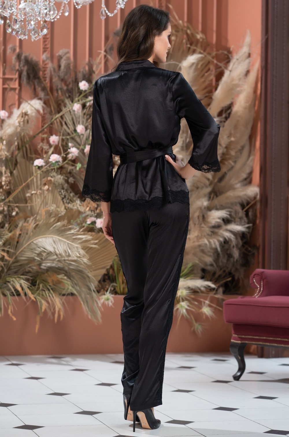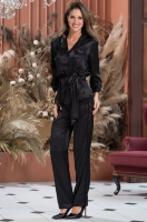 Шёлковая пижама жакет на пуговицах с брюками чёрная FRIDA 3794 Mia-Amore.