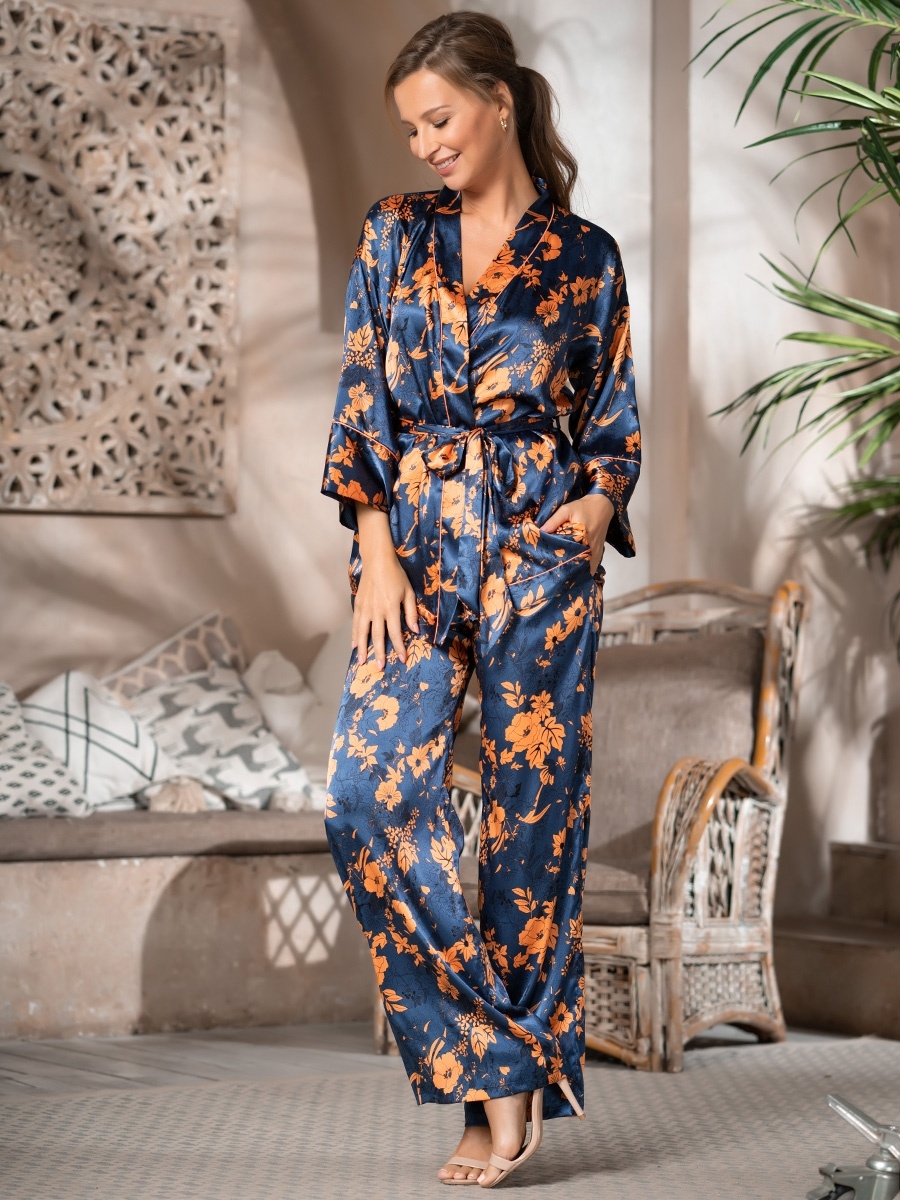 Шёлковая пижама-тройка запашного жакет топ брюки Кьяра QIARA 3826 Mia-Amore имеется в размерах: S. M. L. XL. 2XL. 3XL. 4XL. 5XL.