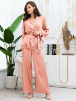 • Элегантный комплект Mia-Amore - состоит из жакета с длинным рукавом, широких брюк и кружевного бралетта, выполнен из смесового шелка и дополнен кружевными вставками. Линию талии можно подчеркнуть за счет широкого пояса с кружевными вставками на концах, который идет в комплекте. Благодаря кружевам пижама смотрится очень сексуальной и женственной. Красивая женская пижама и комфортный домашний костюм- незаменимый атрибут любой женщины. Это сексуальное платье подойдет для особых случаев - например после романтического ужина порадовать себя и своего возлюбленного.