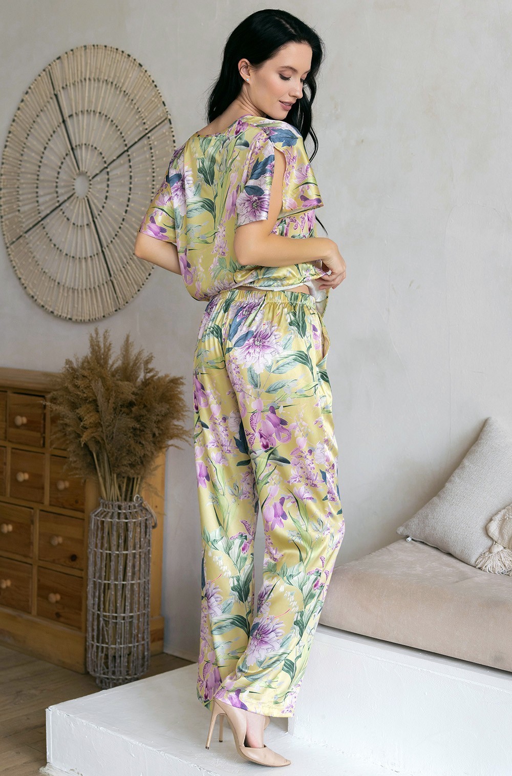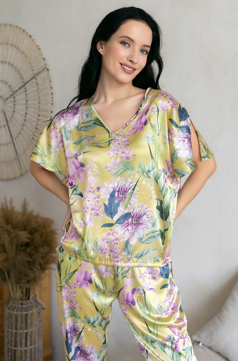 Тип Пижама с брюками Цвет Жёлтый Модель Комплект топ с брюками Материал Смесовый шёлк
