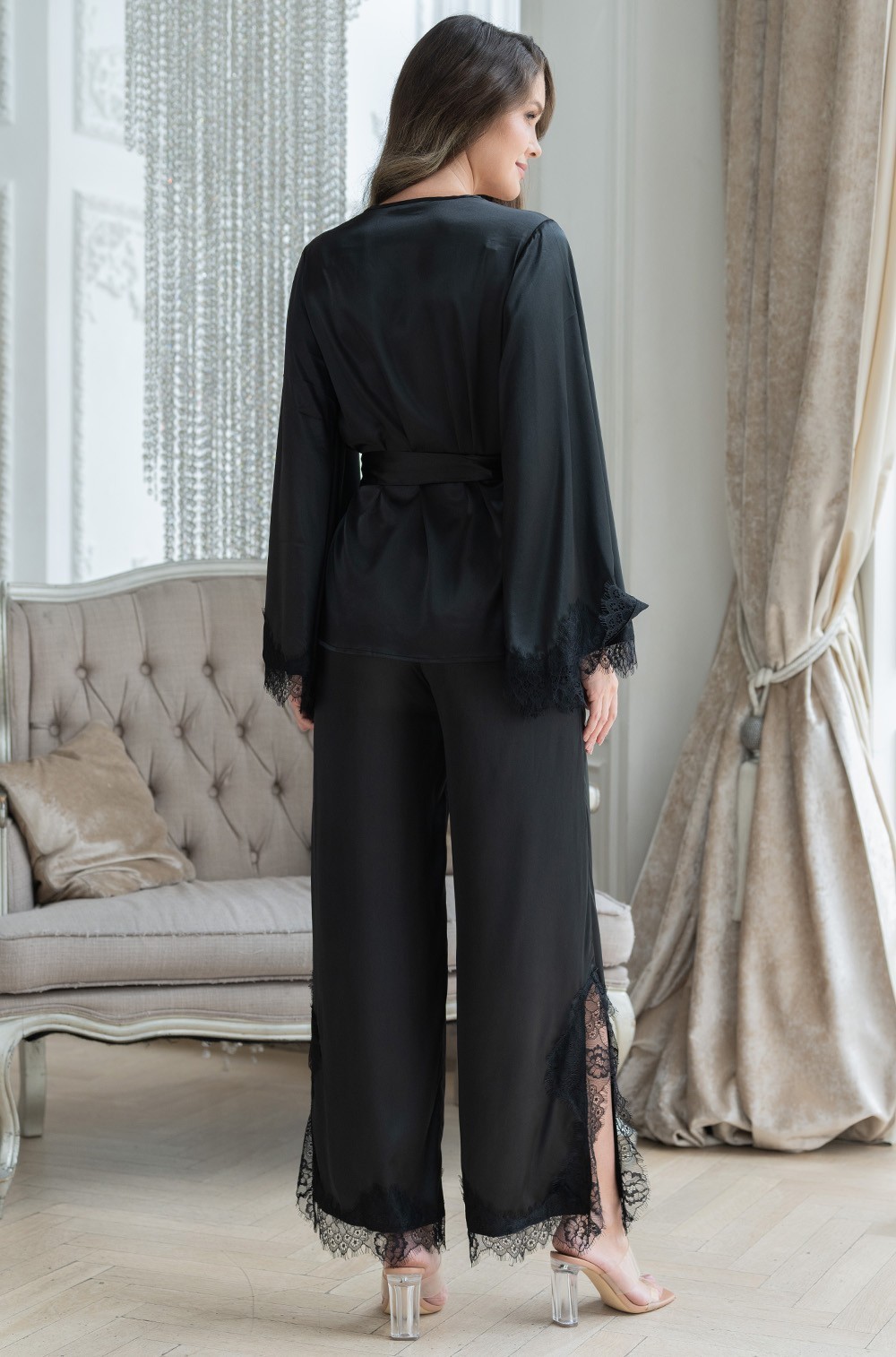 Шелковая чёрная пижама жакет запашной с брюками Виндсор 3886 Mia-Amore имеется в размерах: S. M. L. XL. 2XL.