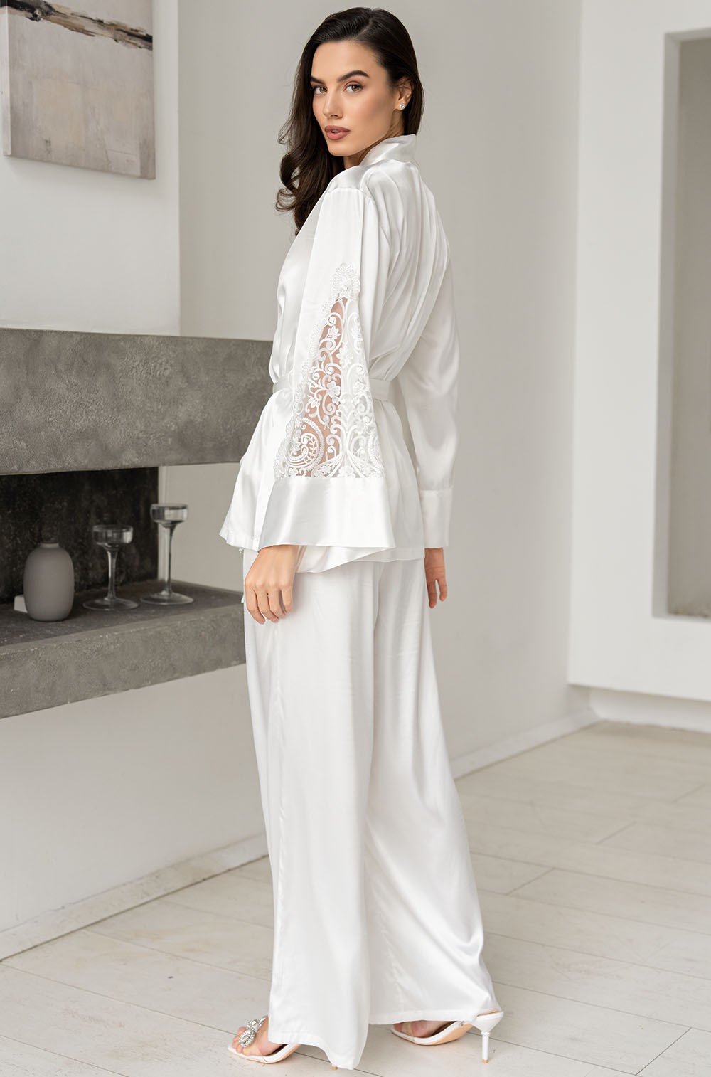 Шёлковая пижама белая топ брюки-палаццо и жакет Марджери 3966 Mia-Amore имеется в размерах: XS. S. M. L. XL. 2XL.