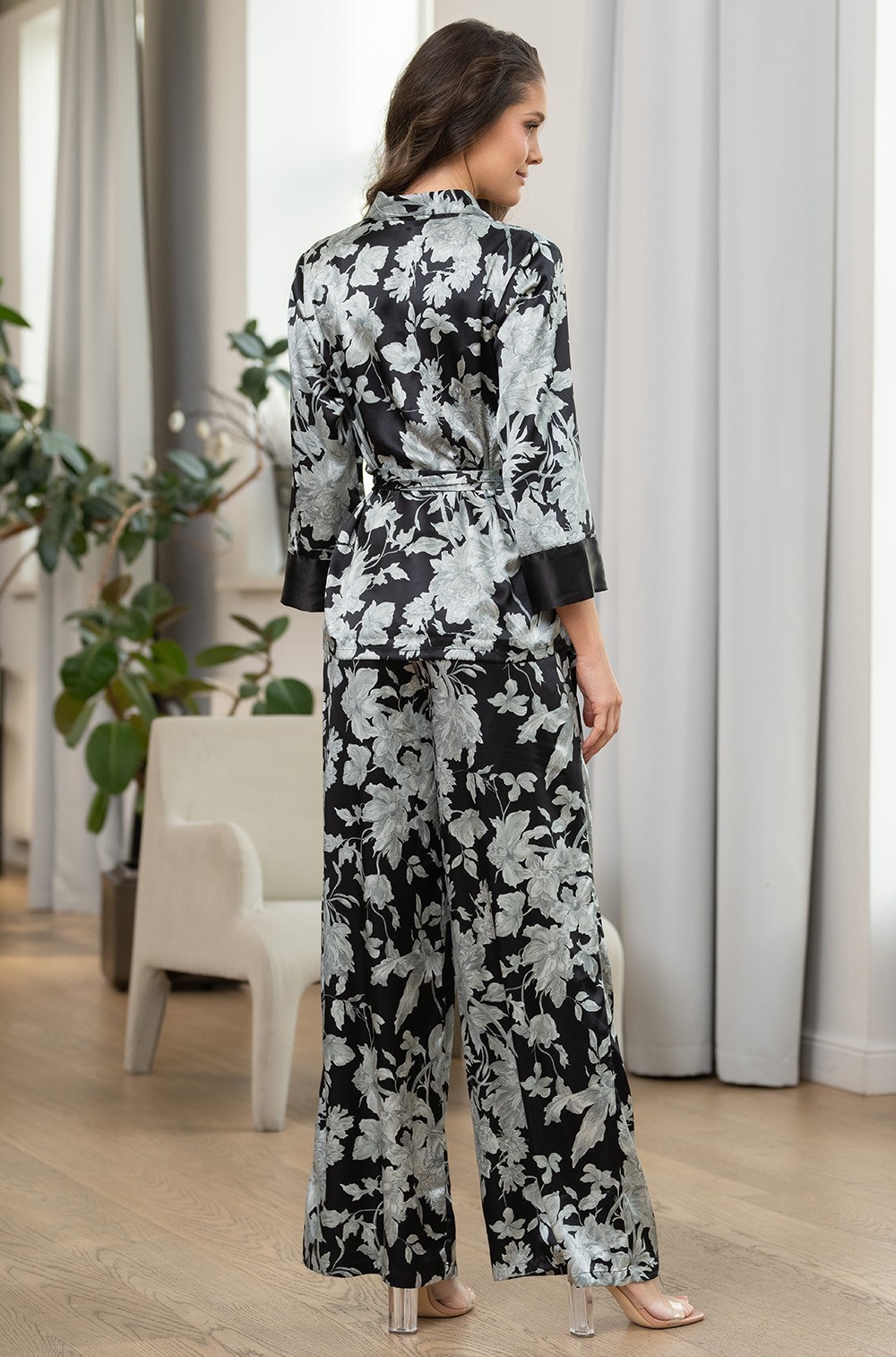 Тип Пижама с брюками Цвет Черный Модель Комплект жакет с брюками Материал Смесовый шёлк -