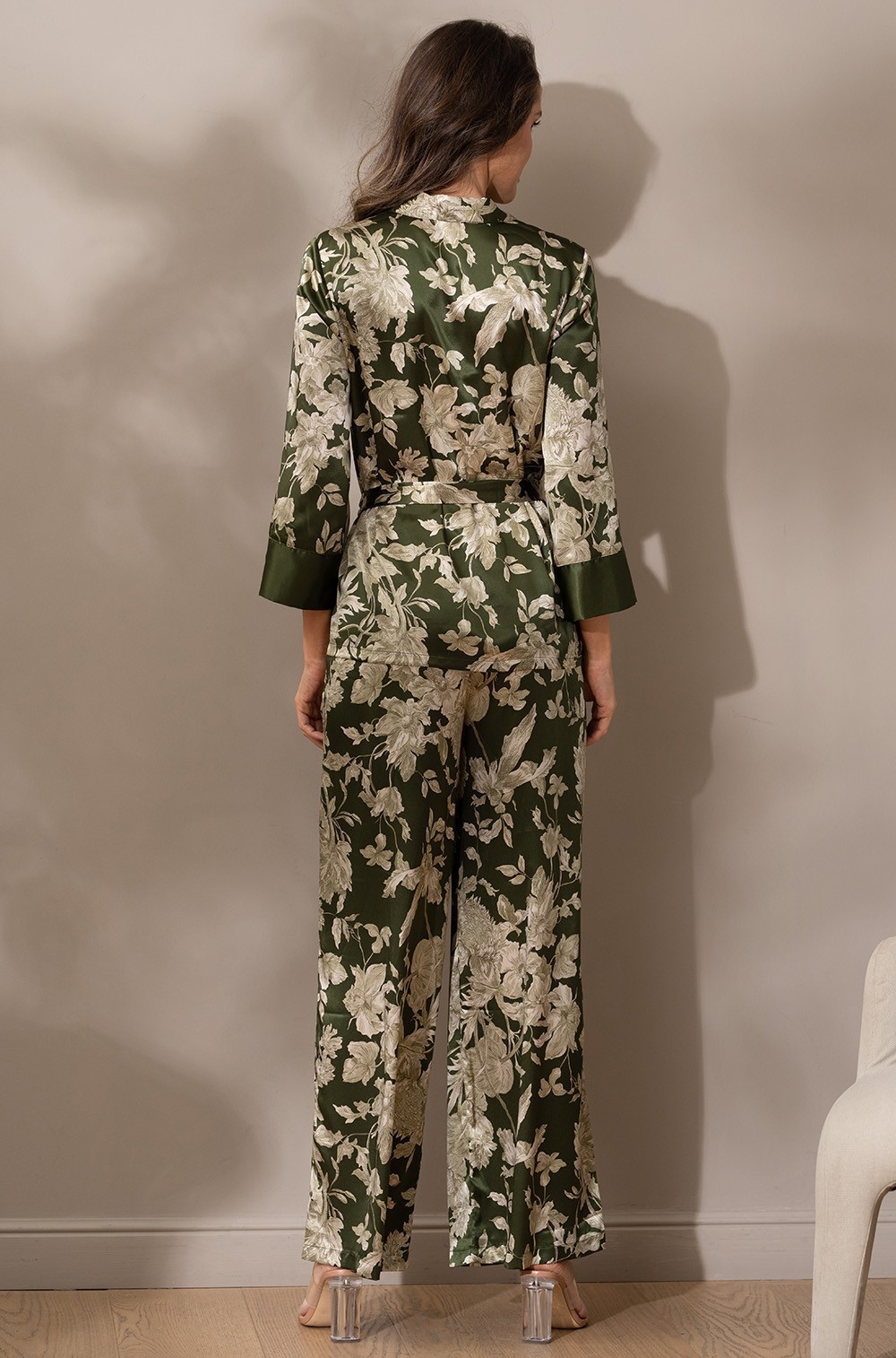 Пижама из шёлка рубашка с поясом и брюки Виттория 5157 хаки Mia-Amore имеется в размерах S. M. L. XL. 2XL.3XL.4XL.