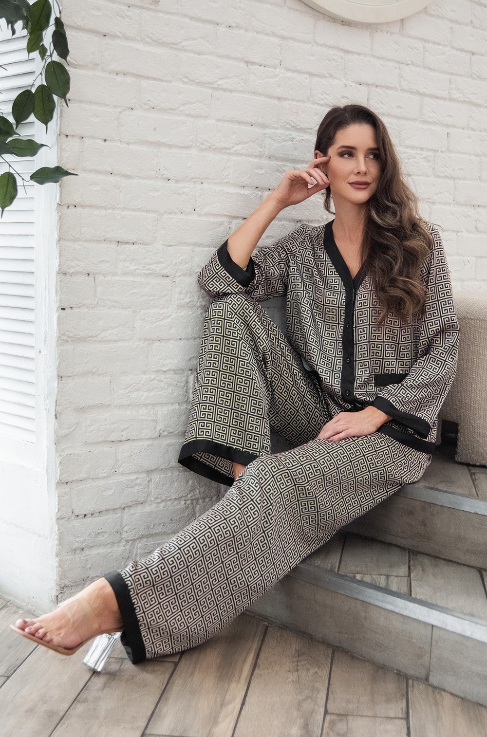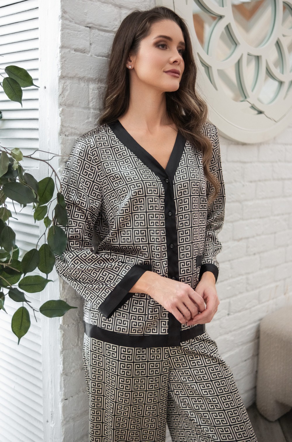 Mia-Amore представляет элегантный домашний комплект свободного силуэта из смесового шёлка: жакет на пуговицах с длинным рукавом и широкие брюки. Накладные карманы на жакете добавляют изысканности. Пижама доступна в широком размерном ряде от XS до 3XL, обеспечивая комфорт и стиль для женщин с различными типами фигур. Состав: 70% шёлк, 25% полиэстер, 5% эластан для комфорта и элегантного вида. Идеальный выбор как для домашнего уюта, так и для сна. У нас проходят акции, позволяющие приобрести пижаму со скидкой.
