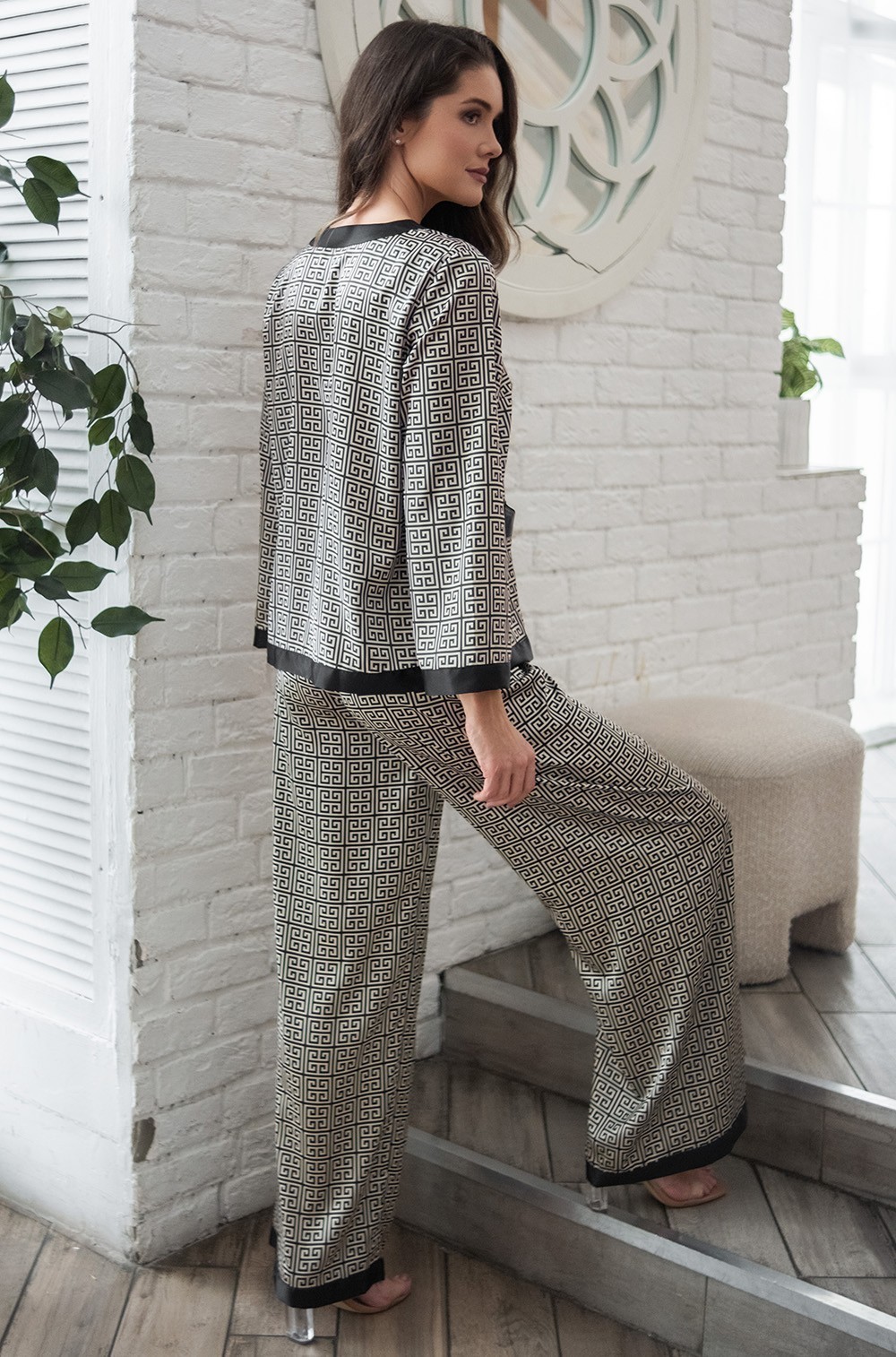 Тип Пижама с брюками Цвет Черный Модель Комплект жакет с брюками Материал Смесовый шёлк -