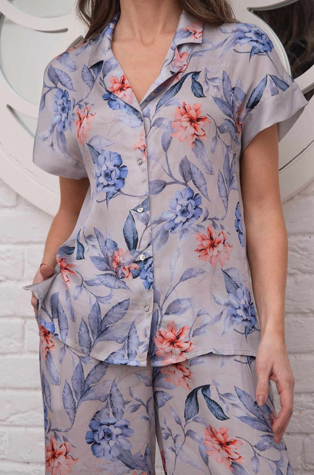 Шёлковая брючная пижама с коротким рукавом Лилия 4126 Mia-Amore имеется в размерах S.M.L.XL.2XL.3XL.4XL.5XL.