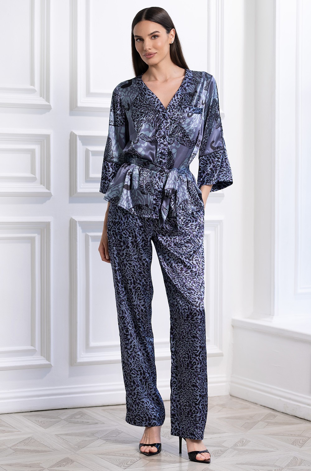 Стильная шёлковая пижама из жакета и брюк Амазонка 8668 Mia-Amore имеется в размерах: S. M L XL.2XL.3XL.