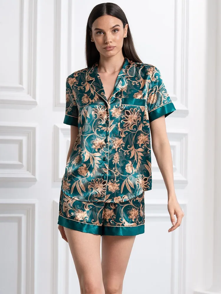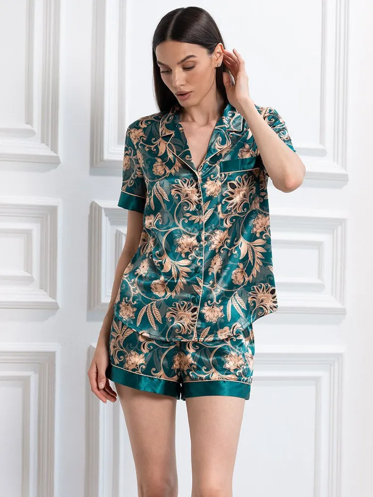 Шёлковая пижама женская рубашка и шорты Эмеральд 3745 Mia-Amore имеется в размерах S.M.L.XL.2XL.3XL.