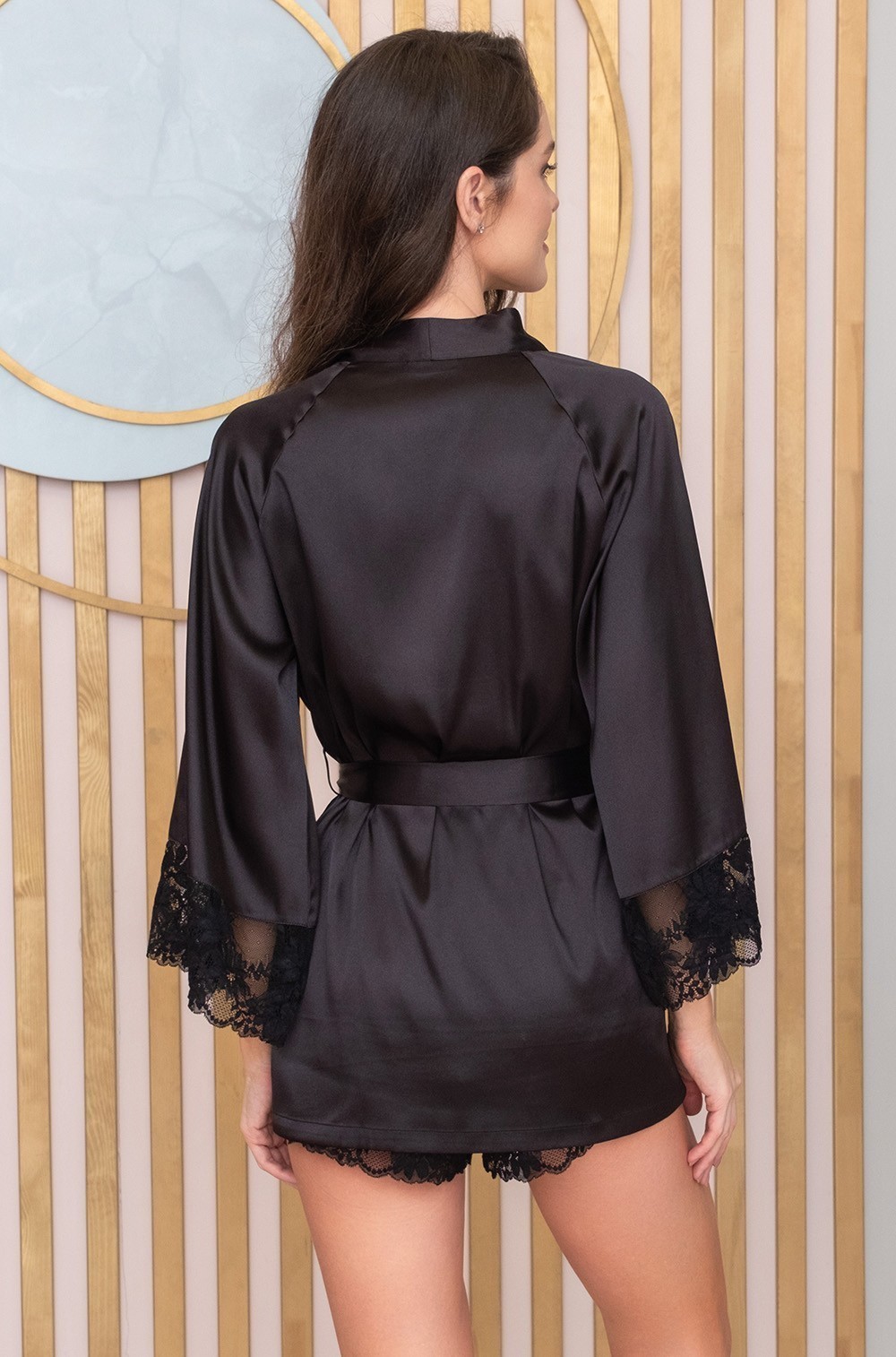 Сексуальная пижама из шёлка халат бралетт шорты Аделина 4177 Mia-Amore имеется в размерах: XS. S. M. L.