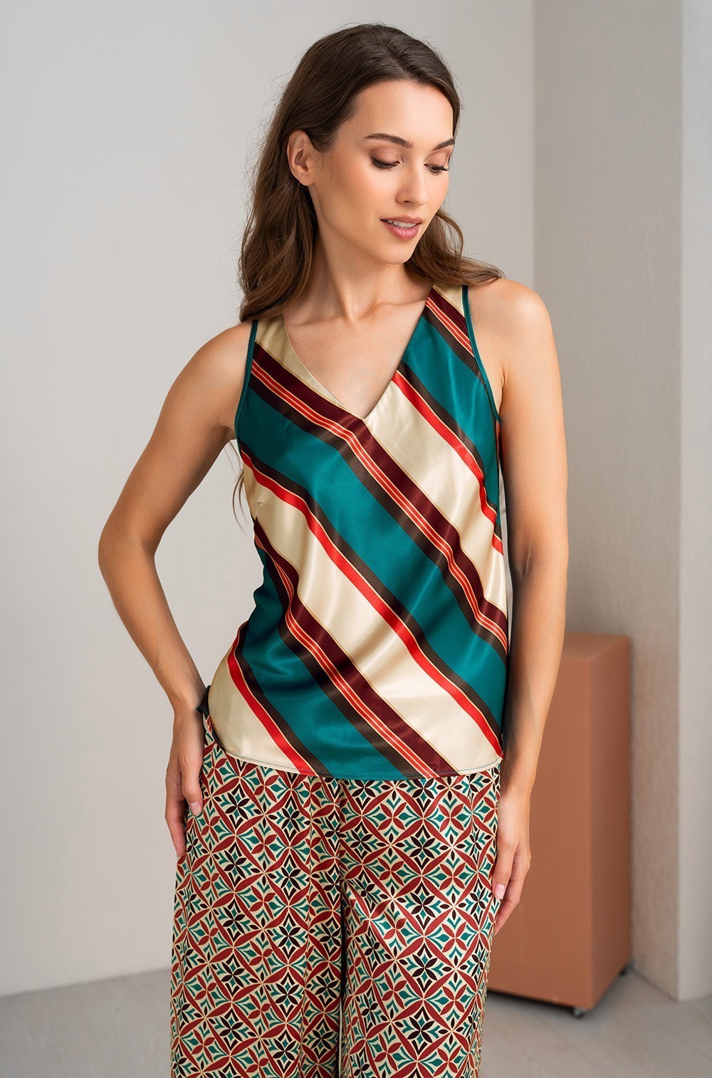 Элегантная шёлковая пижамажакет топ брюки-палаццо Брианна 4335 Mia-Amore имеется в размерах: S, M, L,XL, 2XL, 3XL.