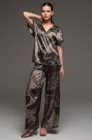 Aisha 4316. Домашний пижамный комплект Mia-Amore состоит из топа свободного силуэта с коротким рукавом и широких брюк-палаццо, создавая стильный и удобный образ для дома. Изделия комплекта выполнены из комбинации принтованного и однотонного смесового шелка, что придает комплекту особый шарм и изысканность.