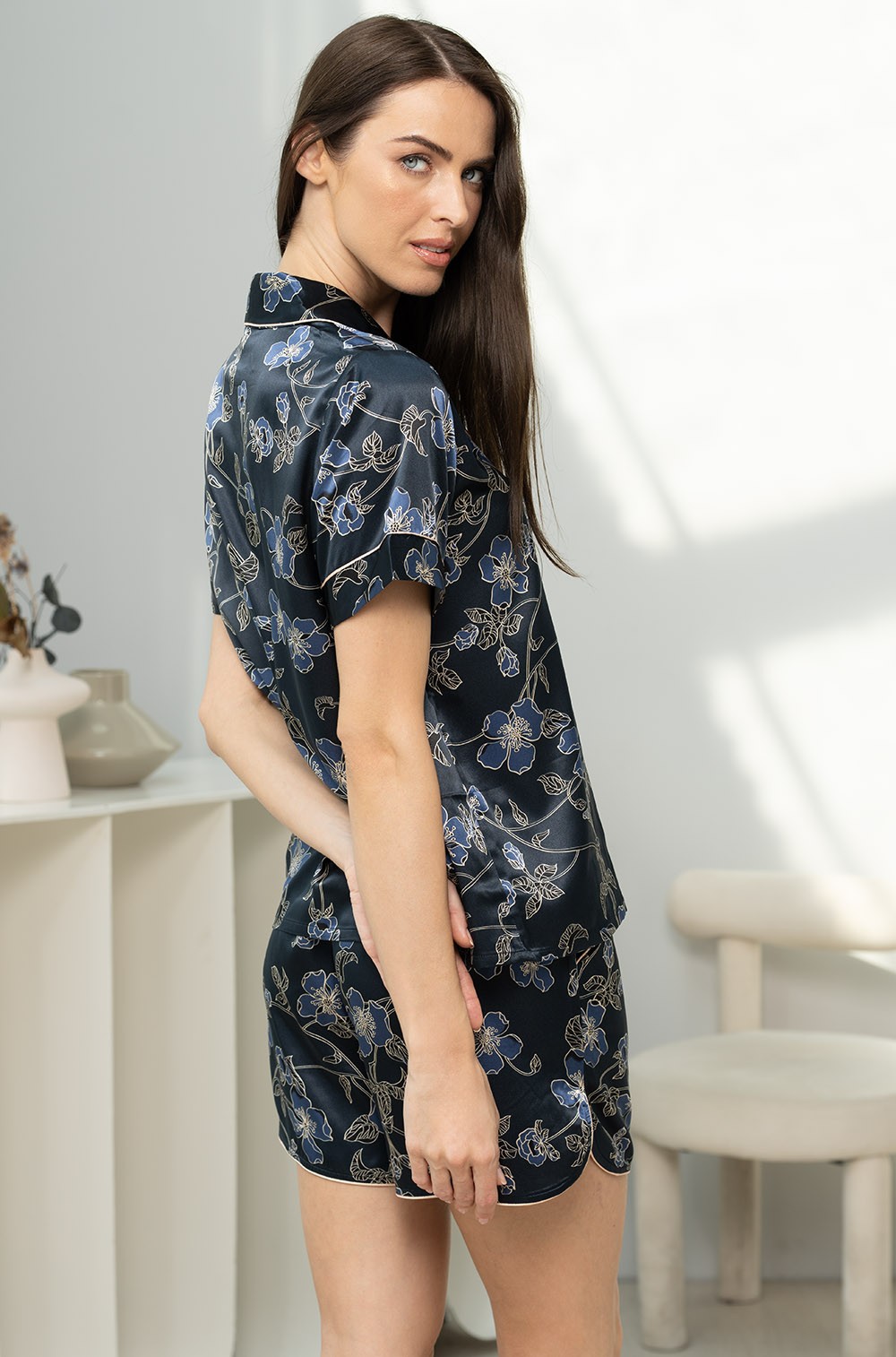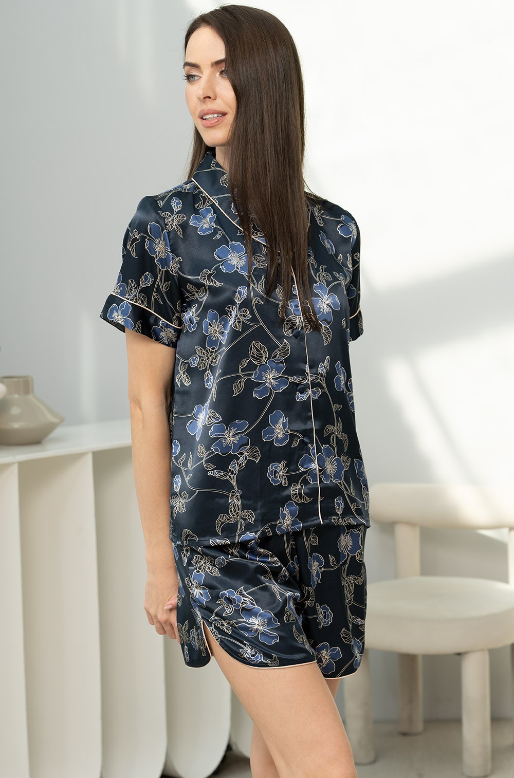 Тип Пижама с шортами Цвет Синий Модель Пижама жакет с шортами Материал Смесовый шёлк