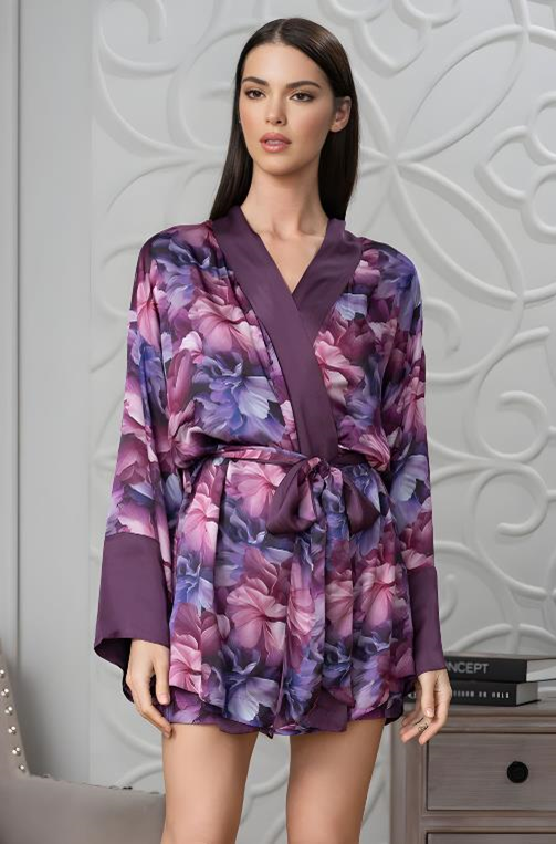 Тип Пижама с шортами Цвет Фиолетовый Модель Комплект жакет, топ, брюки Материал Смесовый шёлк