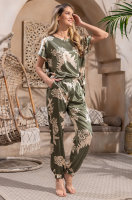 Тип Пижама с брюками Цвет Зелёный Модель Пижама топ с брюками Материал Смесовый шёлк