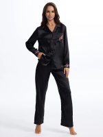 Тип Пижама с брюками Цвет Черный Модель Комплект жакет с брюками Материал Смесовый шёлк