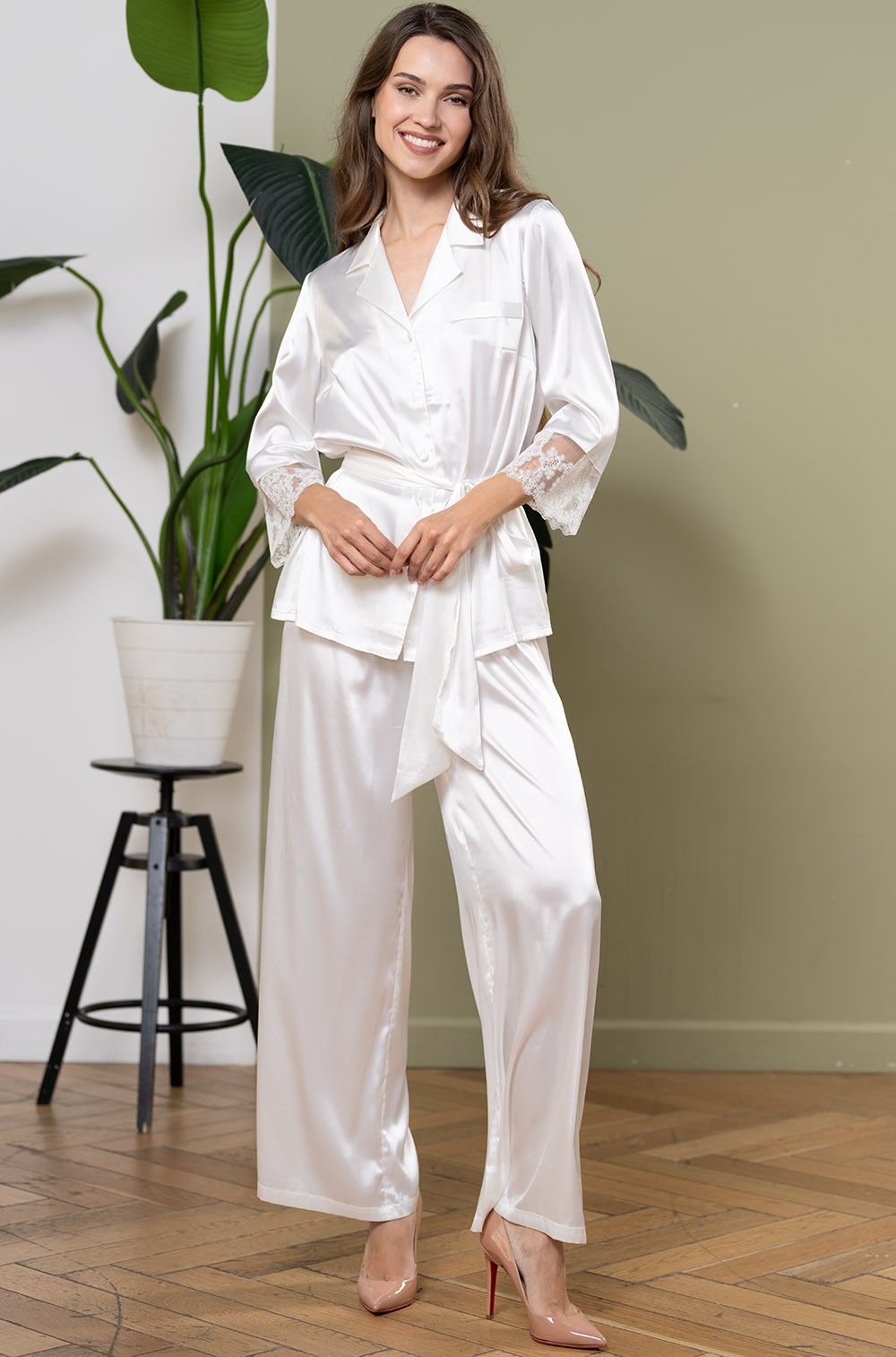 Тип Пижама с брюками Цвет Белый Модель Комплект жакет с брюками Материал Смесовый шёлк