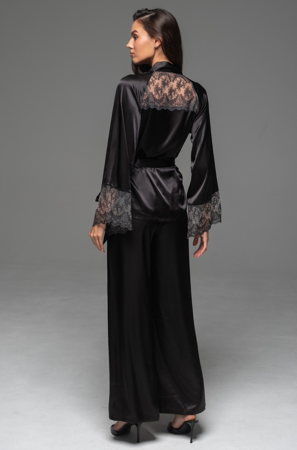 Тип Пижама с брюками Цвет Черный Модель Комплект жакет, топ, брюки Материал Смесовый шёлк