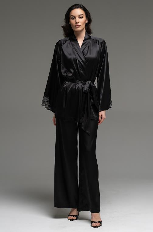 Тип Пижама с брюками Цвет Черный Модель Пижама топ с брюками Материал Смесовый шёлк