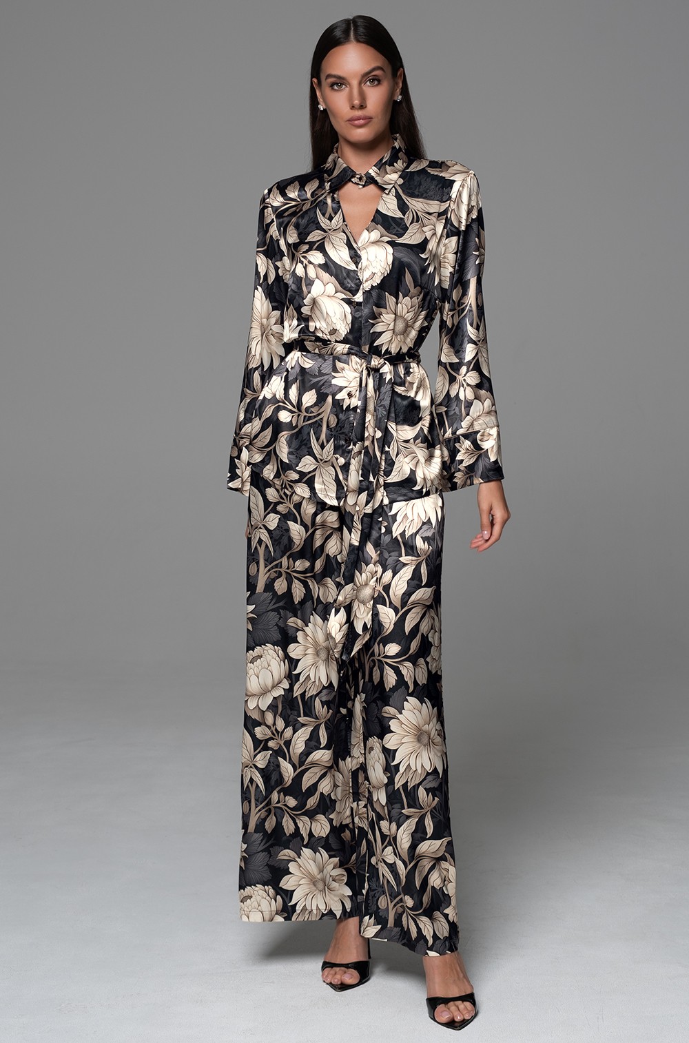 -Шёлковая пижама жакет и широкие брюки-палаццо Дениса 4866 Миа-Аморе