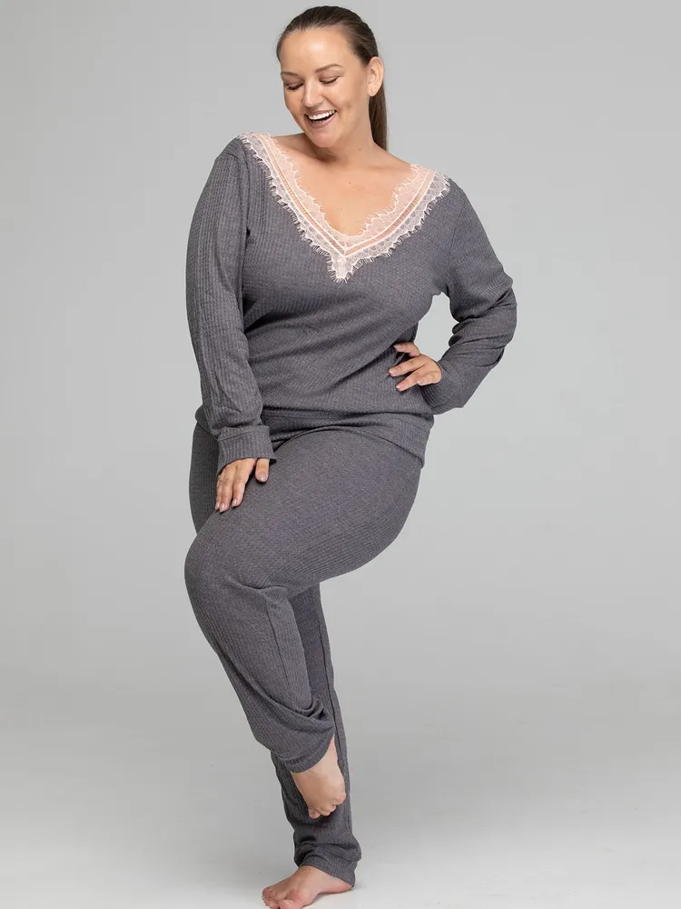 Тип Пижама с брюками Цвет Серый Модель Комплект топ с брюками Материал Трикотаж -