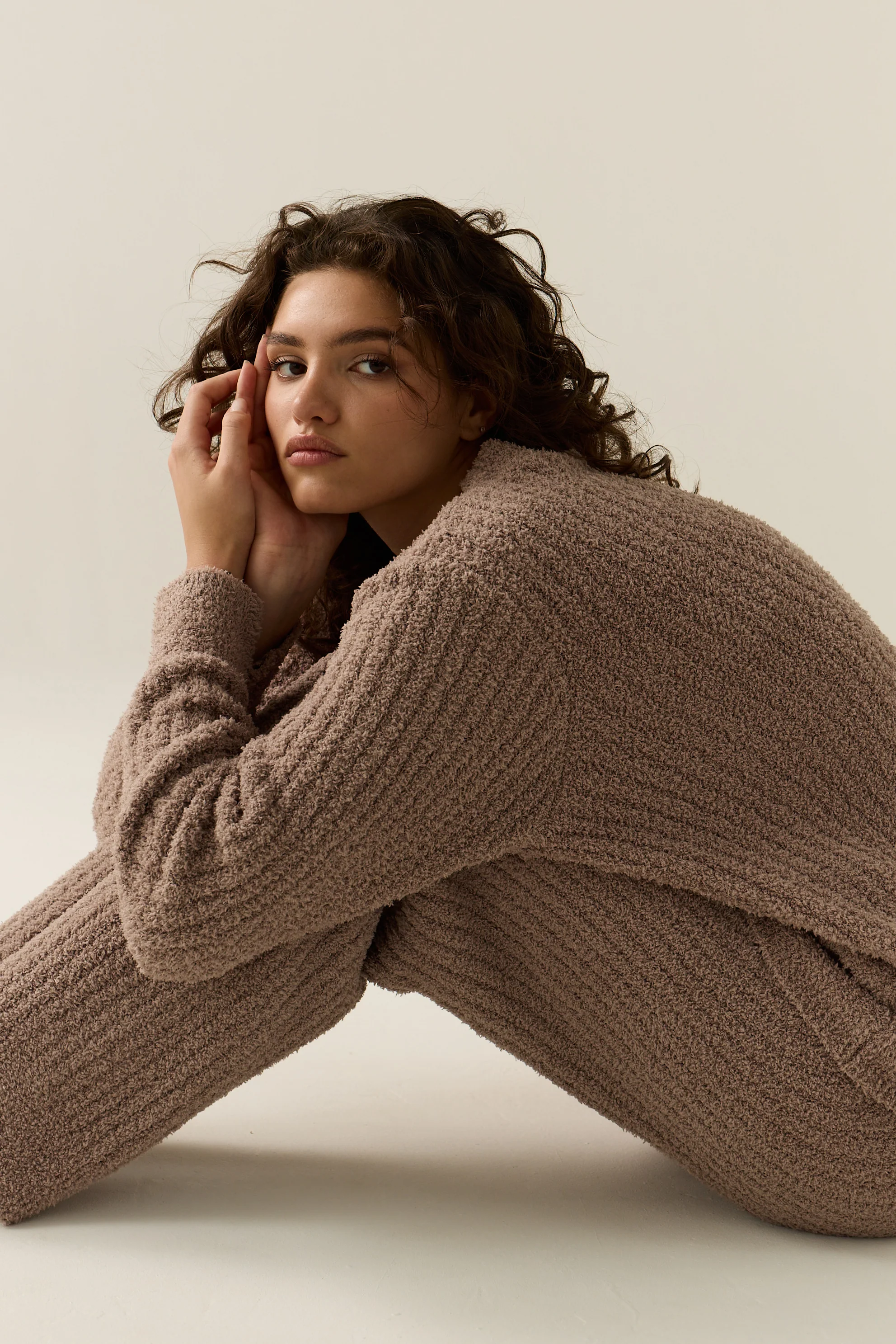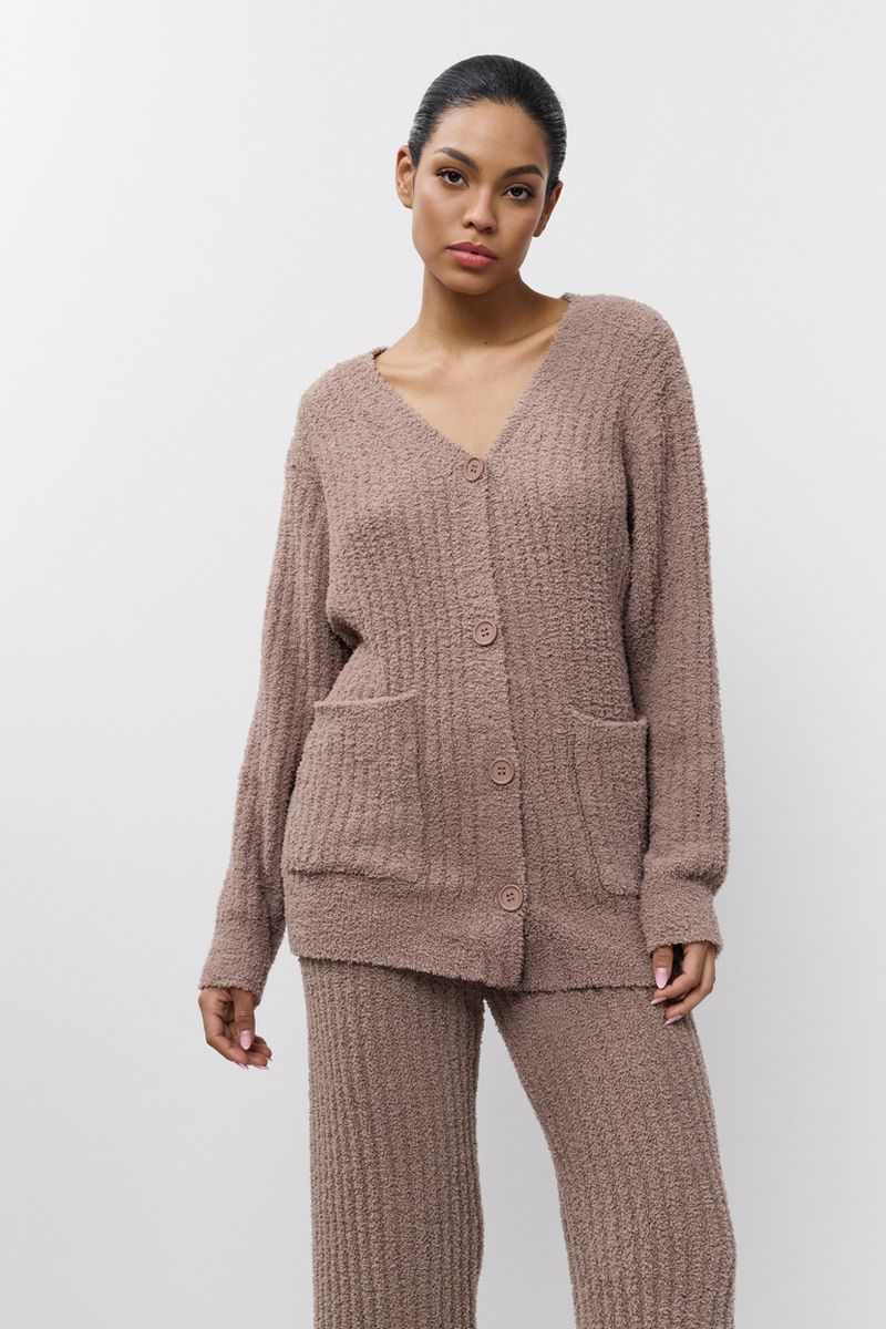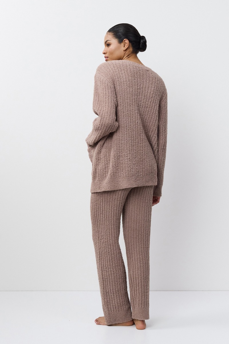 Уютный домашний комплект JOLIE SET SOFT. Не может быть ничего лучше, чем удобная и стильная домашняя одежда для ваших ленивых дней! Мягкий и элегантный комплект JOLIE SET SOFT сделан из ткани в рубчик. Штаны длинные, комфортной посадки, эластичный пояс. Кардиган с V-образным вырезом застегивается на пуговицы и имеет два накладных кармана. В сочетании с брюками этот комплект создает успокаивающий образ, напоминающий мягкость овечьей шерсти. Он идеально подходит для отдыха и является воплощением релаксации.