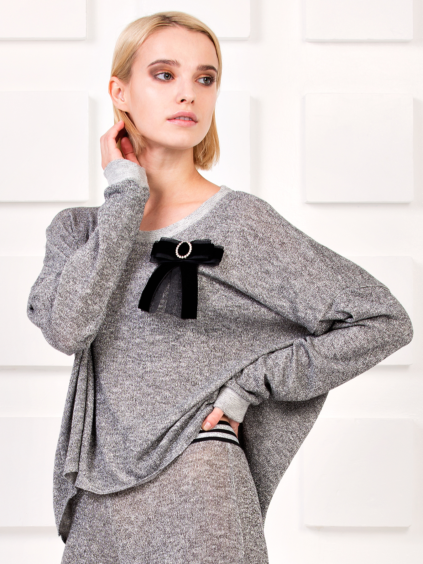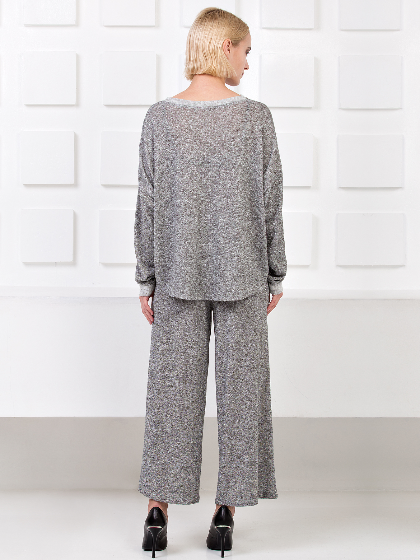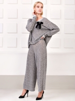 Изюминка коллекции Opium Shine - восхитительный костюм, состоящий из топа свободного кроя oversize и брюк актуального фасона «кюлоты». Струящийся трикотаж с серебристой люрексной нитью, съёмная брошь-бант из бархата и страз – атрибуты праздника, который Вы сможете с удовольствием провести в этом костюме, дополнив его изящной обувью. А удивительно мягкая и приятная к телу внутренняя сторона ткани, комфортная резинка брюк делают этот комплект незаменимым для уютных вечеров или приёма гостей в непринужденной обстановке.