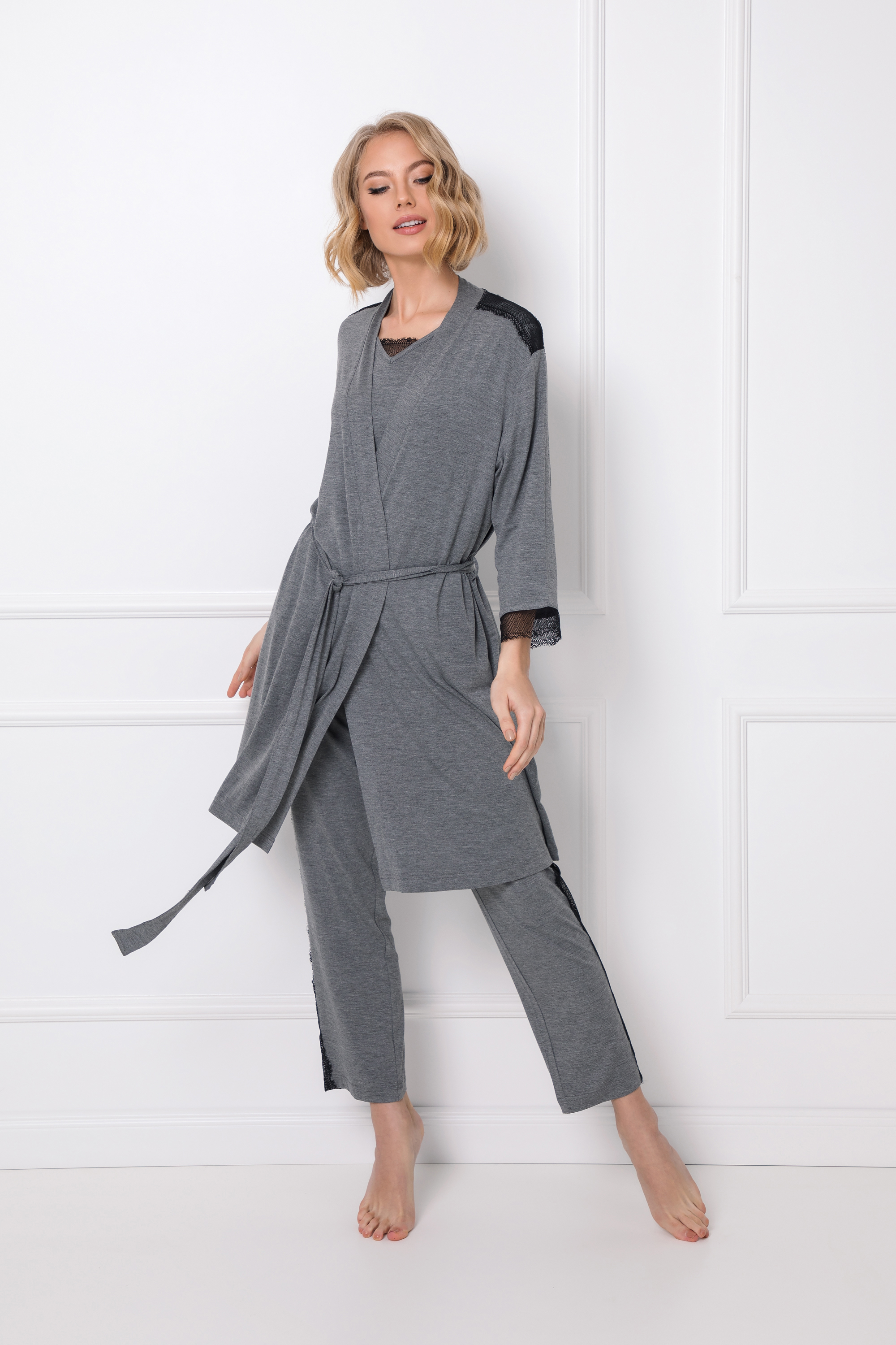 Пижама женская серая футболка с брюками из вискозы с кружевом CAMILLA Aruelle имеется в размерах 34(XS). 36 (S). 38 (M).