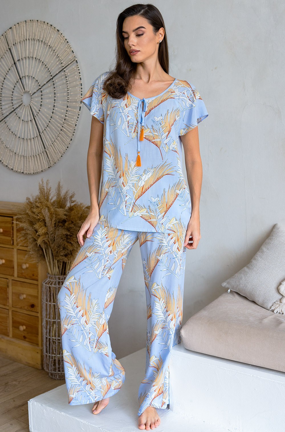 Тип Пижама с брюками Цвет Голубой Модель Пижама топ с брюками Материал Вискоза -
