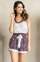 Двухцветный женский спальный комплект топ с шортами. Шорты с карманами выполнены из контрастной ткани. Пижама Mia-Amore выполнена из принтованной вискозы. Удобный свободный топ с широкими бретелями выполнен из светлого принтованного полотна, отделка - из темного. Тот же приём используется в шортах. Тёмные шорты с высокой посадкой, пояс украшен бантом, низ шорт выполнен из светлой отделки. За счет своего интересного дизайна привлекает внимание и выделяет свою обладательницу на фоне остальных. Широкий размерный ряд от S 44 до 2XL (52) делает коллекцию доступной не только стройных девушек, но и обладательниц роскошных форм. Пижама Миа-Amore очень выгодно смотрится на любой фигуре! И конечно же наши дорогие беременные, будущие мамы оценят комфорт.