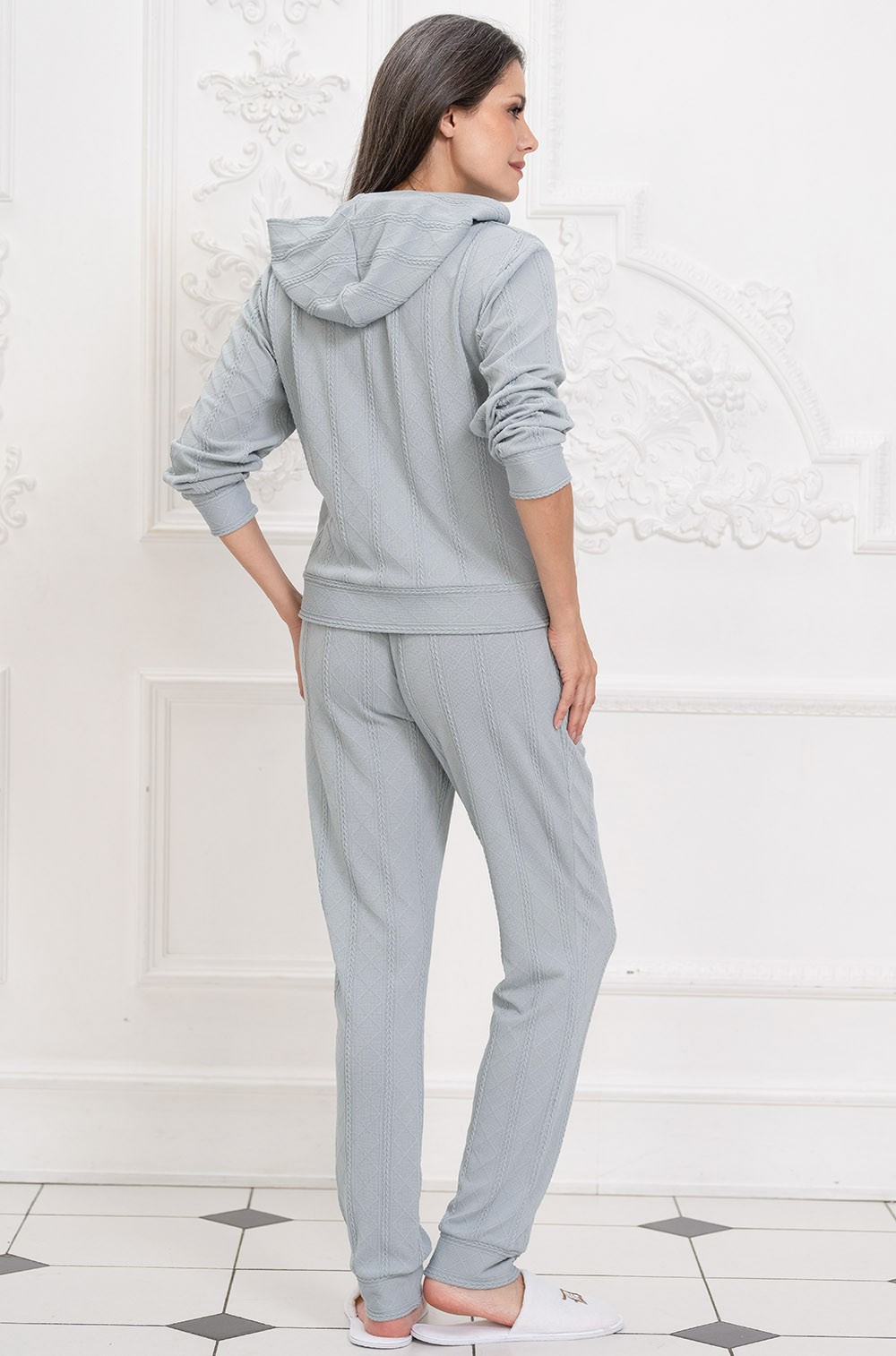 Удобный домашний женский комплект Mia-Amore выполнен из трикотажного полотна с фактурной вязкой. Комплект состоит из худи на молнии с длинным рукавом и брюк с широким эластичным поясом. Низ рукава и низ штанин обработаны манжетами. В брюках имеются карманы, по верху продета кулиска с декоративными кисточками.