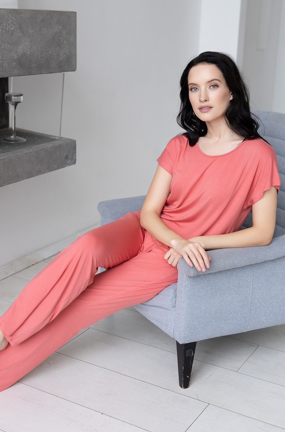Домашний комплект из вискозы топ брюки 1936 коралл Алексис Mia-Amore имеется в размерах: S. M. L. XL. 2XL. 3XL.