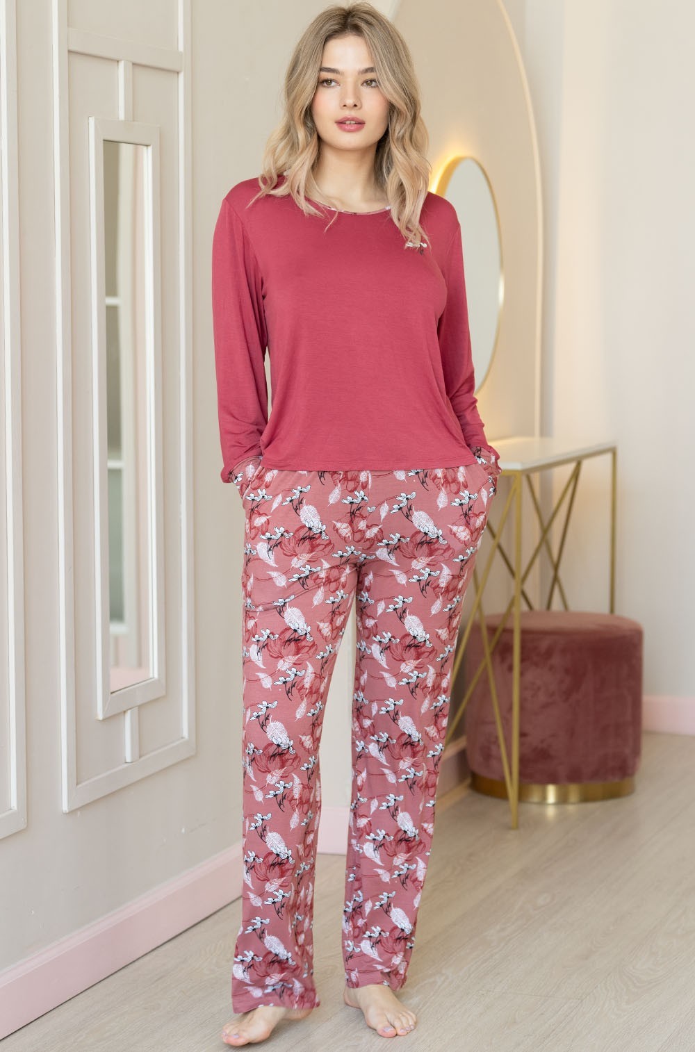 Тип Пижама с брюками Цвет Розовый Модель Пижама футболка со штанами Материал Смесовый шёлк