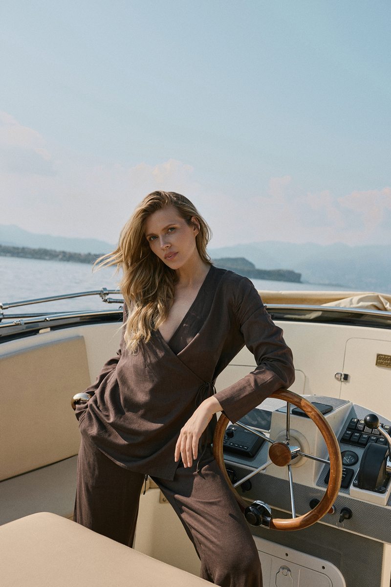 Изготовлено из смеси вискозы и льна, мягкое и легкое на ощупь.