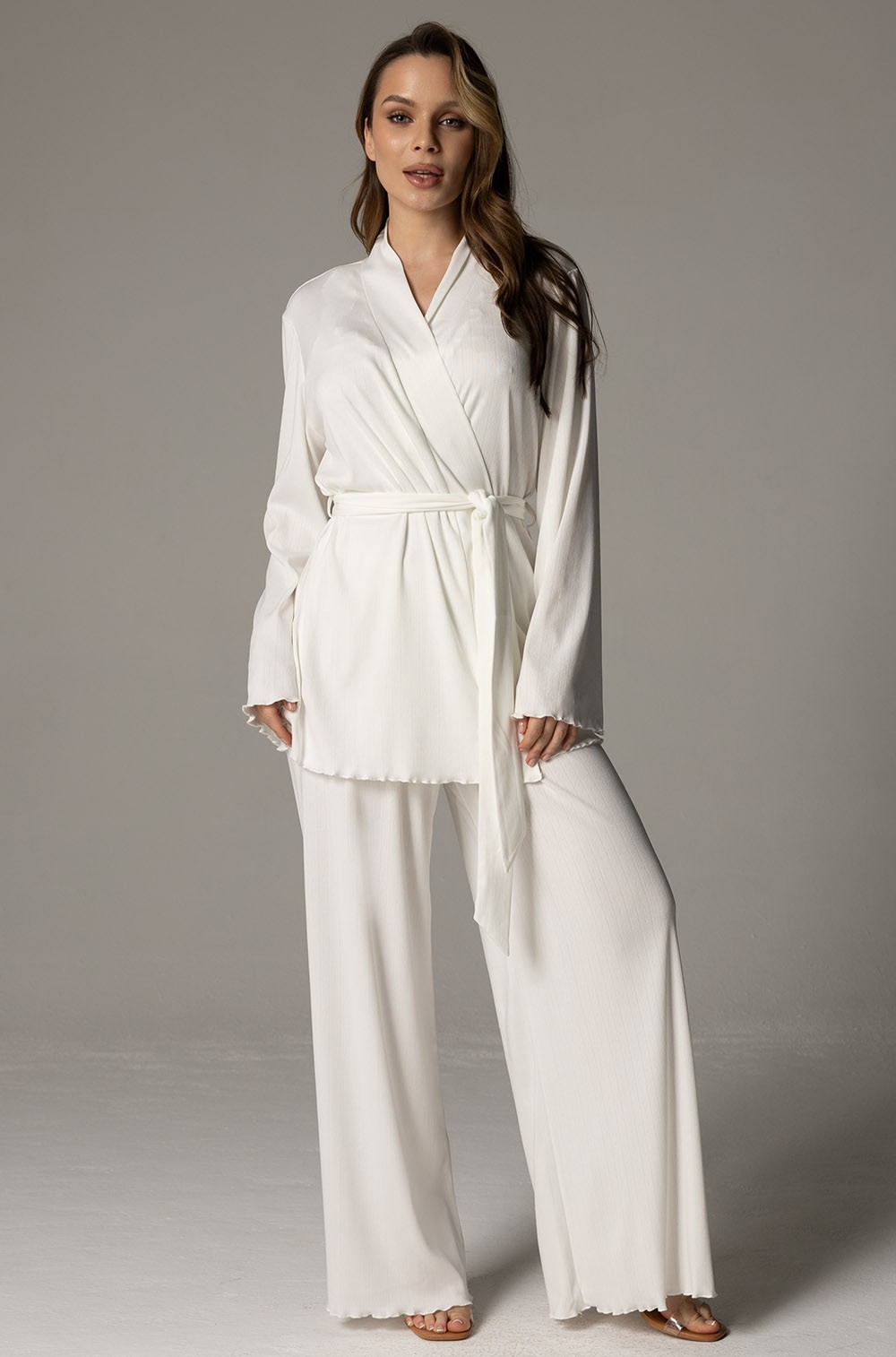 Пижама-тройка Mia-Amore Susan 5606 с брюками из трикотажа пуантель белая
