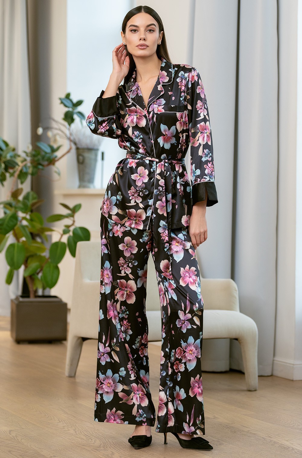Тип Пижама с брюками Цвет Черный Модель Комплект жакет с брюками Материал Смесовый шёлк