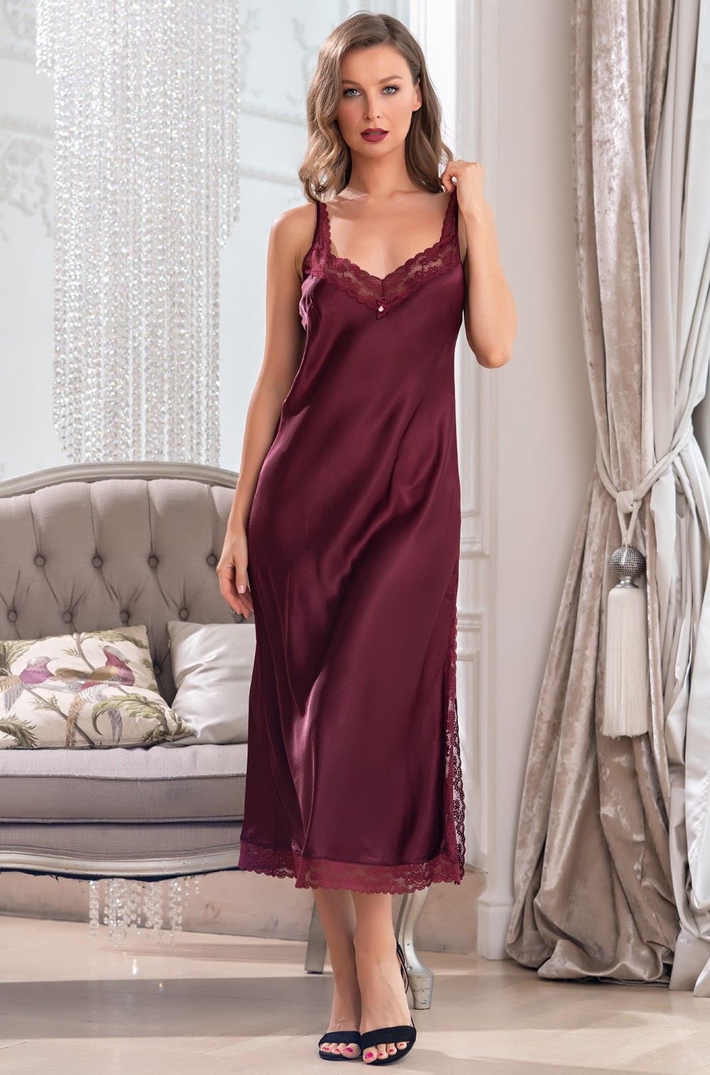 Сорочка ночная длинная с кружевом VICTORIA 7108 Mia-Amore бургунди имеется в размерах XS. S. M. L. XL. XXL. 3XL