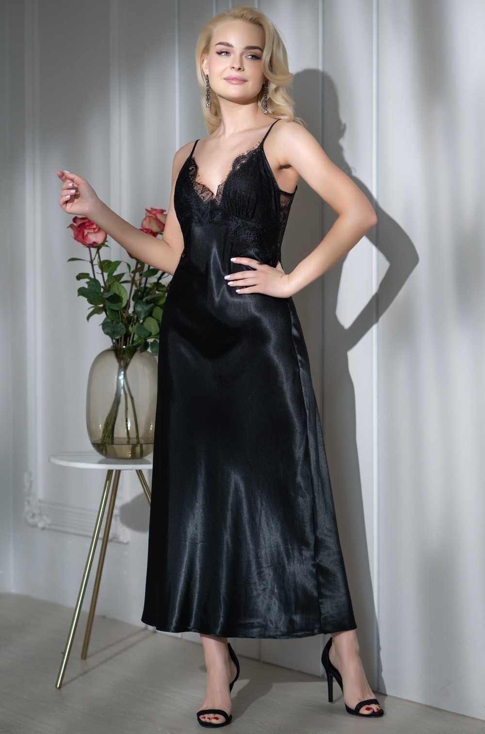 Эротическая сорочка длинная атлас с кружевном ANETTA 7257 Mia-Amore чёрная имеется в размерах S. M. L. XL. XXL.