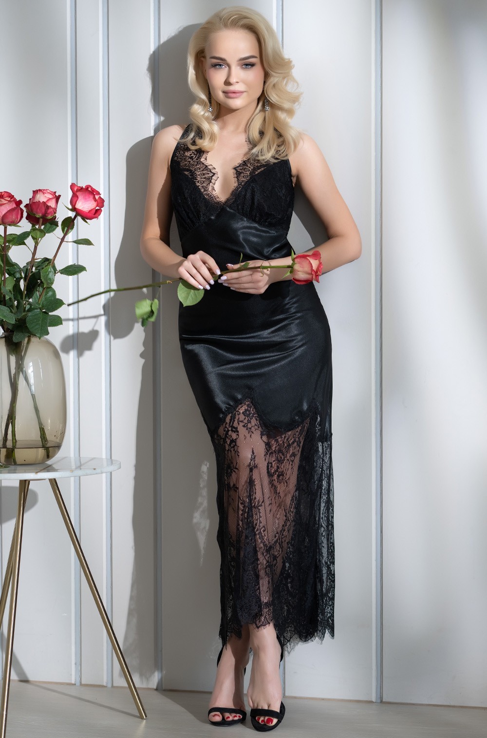 Эротическая сорочка длинная атлас с кружевном ANETTA 7257 Mia-Amore чёрная имеется в размерах S. M. L. XL. XXL.