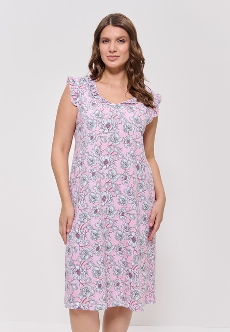 Ночная сорочка хлопок большие размеры розов/цветы 680 Cleo имеется в размерах: 48. 50. 52. 54. 56. 58. 60. 62. 64.
