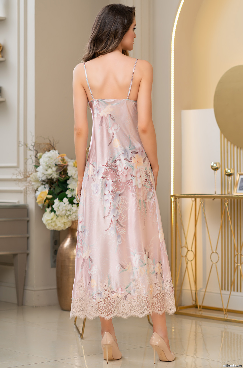 Ищите идеальную сорочку для сна и отдыха? Вам на помощь придет шелковая нежная ночная сорочка! Длинная элегантная сорочка Милинда 3728 Mia-Amore полуприлегающего силуэта выполнена из принтованного смесового шелка на тонких бретелях. Сорочка декорирована ажурным кружевом по вырезу и низу, с левой стороны расположен разрез. В центре выреза находится атласный бантик с подвеской. Ткань сорочки состоит из 70% натурального шелка, 25% полиэстера и 5% эластана, создавая мягкое, воздухопроницаемое и эластичное полотно. Эта красивая и удобная сорочка подходит для сна и отдыха и станет отличным выбором для свадебного утра. Благодаря своему полуприлегающему силуэту, она красиво подчеркивает достоинства фигуры. Дополнительно можно приобрести халатик арт. 3729, который станет удачным дополнением к этому изысканному образу.
