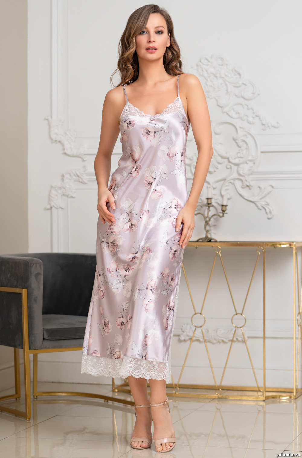 Шёлковая сорочка длинная SELINE Селин 3711 Mia-Amore имеется в размерах: S.M.L.XL.2XL.3XL. -