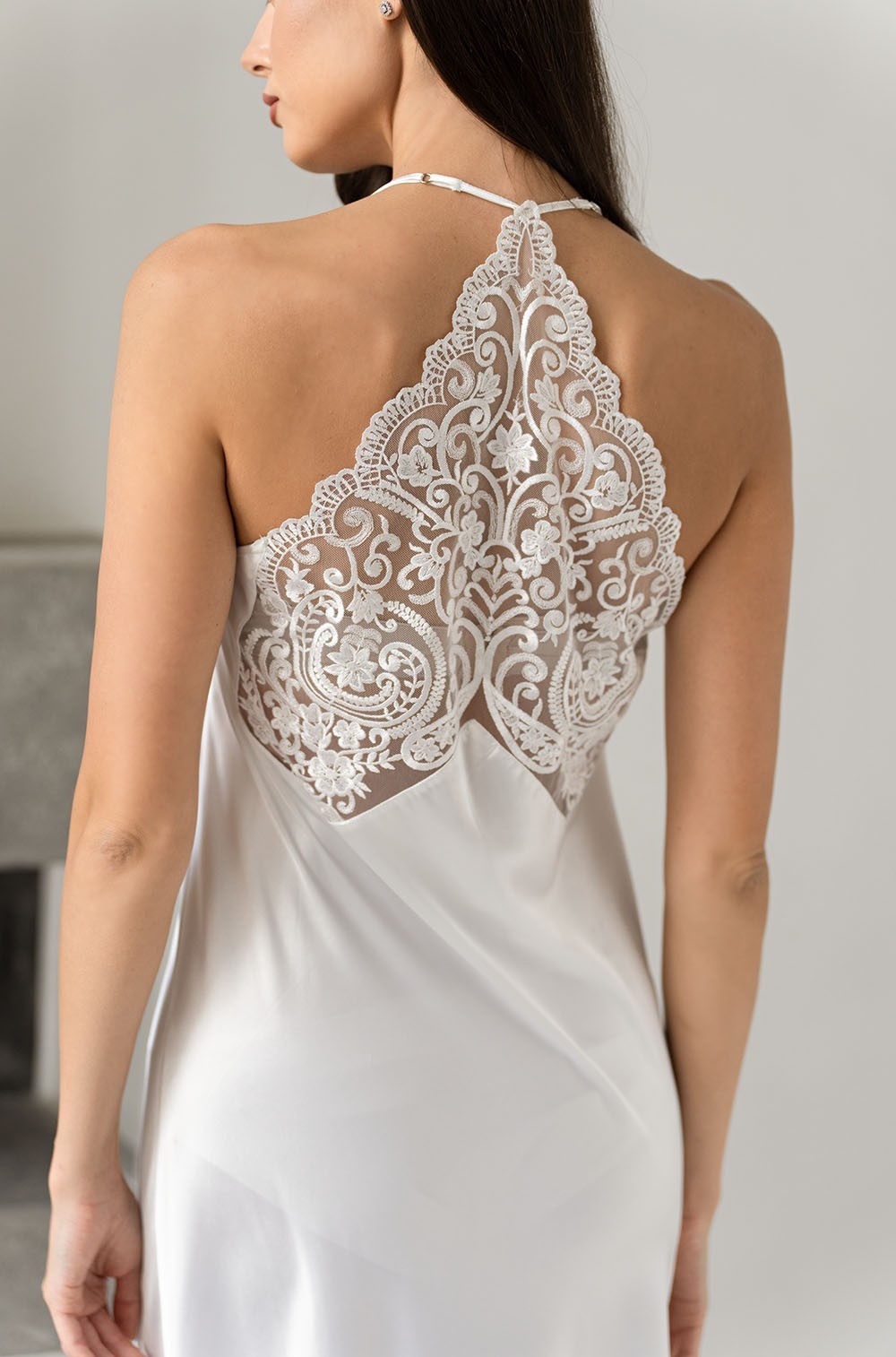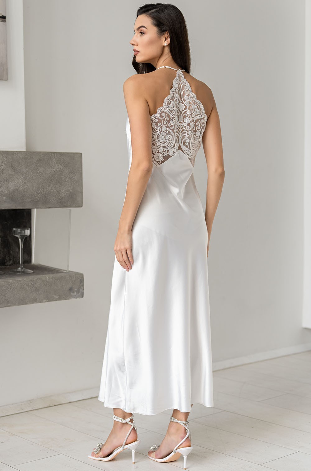 Шёлковая длинная сорочка на тонких бретелях белая Марджери 3968 Mia-Amore имеется в размерах: XS. S. M. L. XL. 2XL.