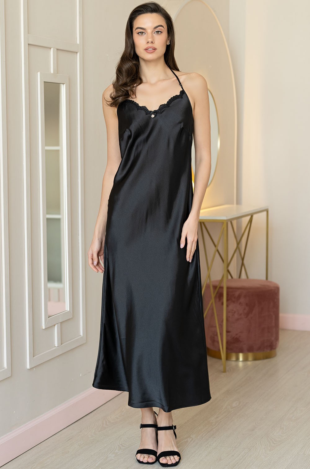Шёлковая сорочка длинная на тонких бретелях чёрная Марджери 3968 Mia-Amore имеется в размерах: XS. S. M. L. XL. 2XL.