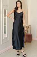 Тип Сорочка средней длины Цвет Черный Модель Сорочка на узкой лямке Материал Смесовый шёлк -
