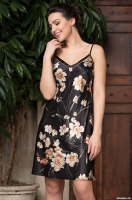 Классическая короткая ночная сорочка Mia-Amore из смесового шелкового полотна с цветочным принтом. Тонкие бретели сорочки и отделка лифа выполнены из черного смесового шелка с кантом легкого золотистого оттенка в цвет принта. Сорочка женская облегающего силуэта длиной до колен, на узких бретелях привлекает мужской взгляд. Легкая, дышащая ночная сорочка женская приятна к телу. Модели из шёлка всегда популярны. Сорочка может стать идеальным нарядом для домашней вечеринки с подругами, для романтического вечера, для сна. Уход за изделием с верхним декором – бережная стирка при 30 градусах.