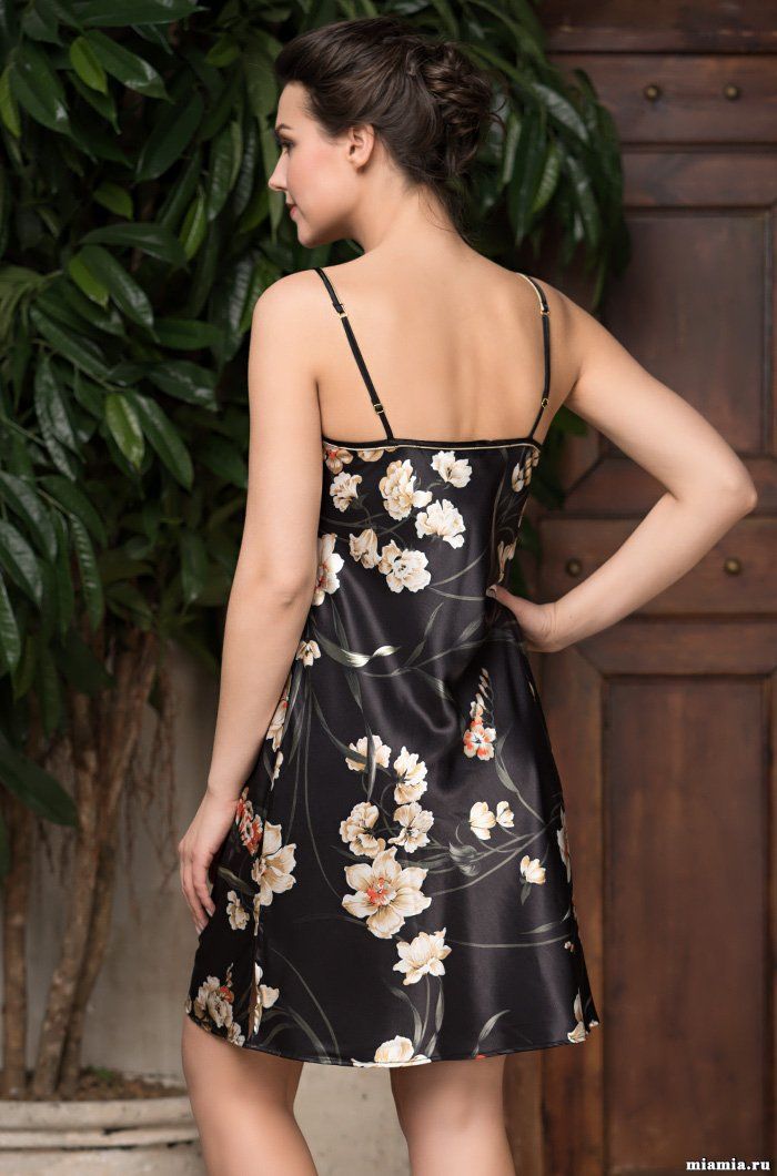 Тип Сорочка короткая Цвет Черный Модель Сорочка на узкой лямке Материал Смесовый шёлк -
